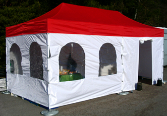 Helposti ja nopeasti kasattava 6x3m teltta.